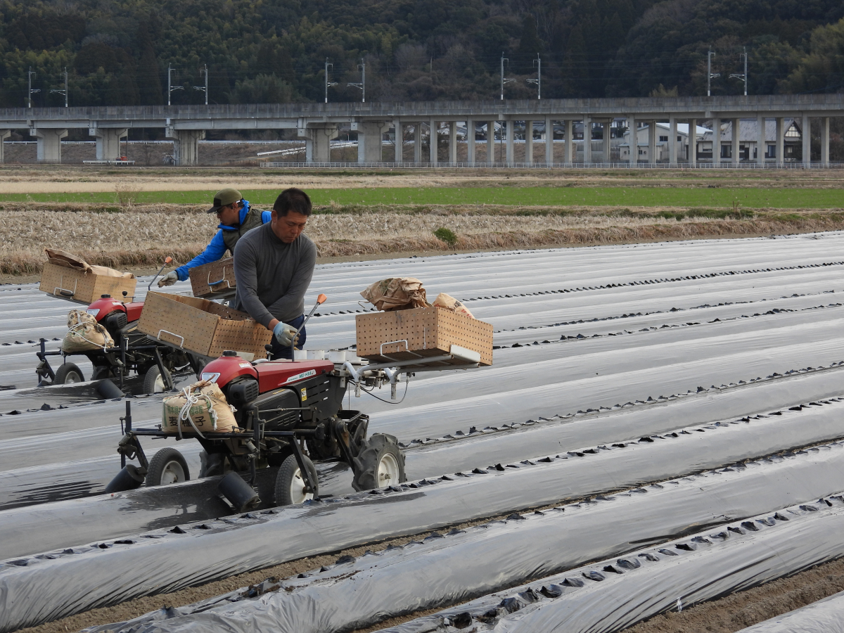 植え付けのトップバッターである九州では、まだ寒さの残る1月下旬から植え付けがスタートしました。植え付け完了時期は2月末を予定しており、この1か月間がまさに勝負の時期だそうです。