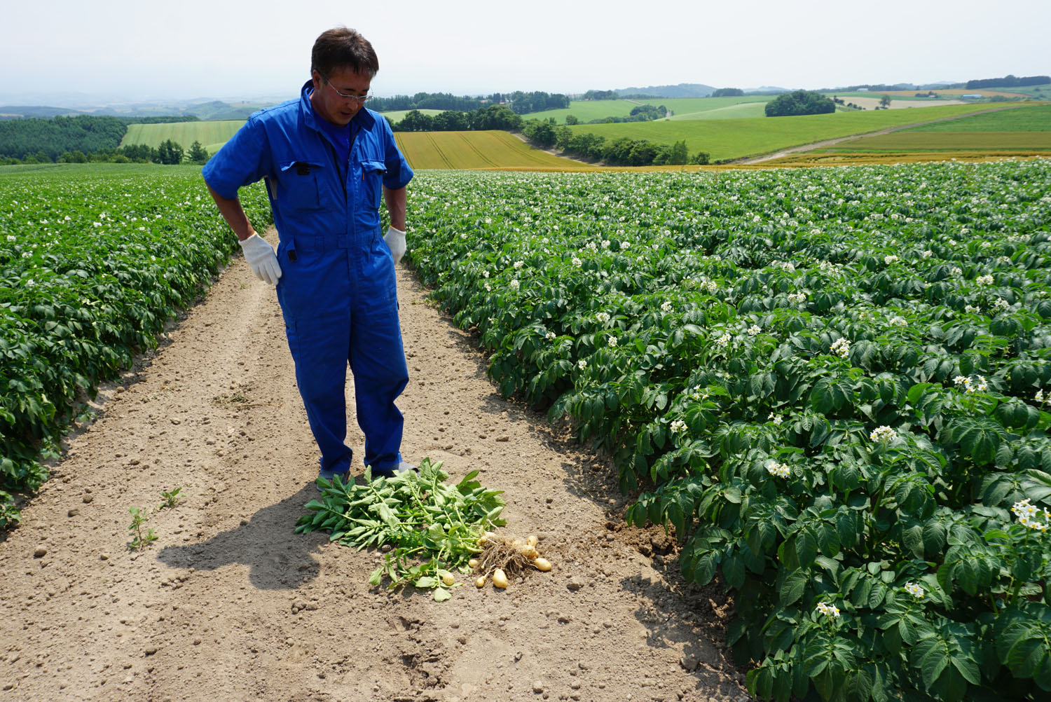 そして今年は応募期間をわけて、「トヨシロ」と「ぽろしり」の2種類のじゃがいもをプレゼント予定!ということで~「トヨシロ」レポートは美瑛町石川さんの畑からお届けしますよー!