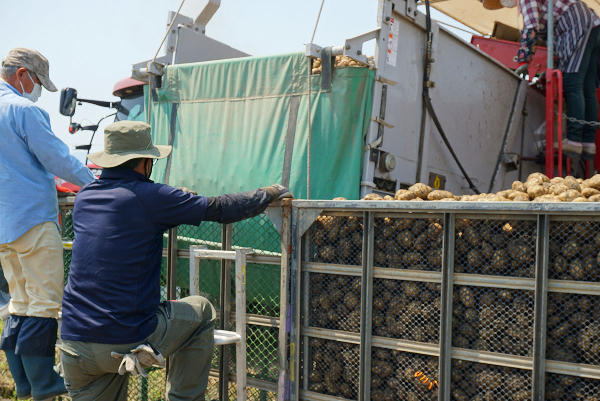 じゃがいも収穫前線のスタート地、九州。今年は雨の影響もあり少し遅れた収穫作業が終わるころです。