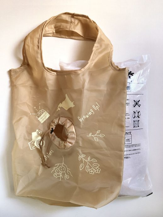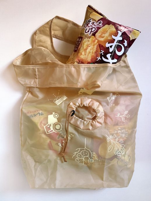 エコバッグは畳むと可愛いジャガイモの形。こんなエコバッグ、初めて見ました。