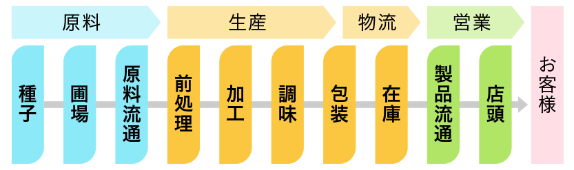 カルビーグループは、原料である自然素材の開拓から手掛け、常に高い品質の商品をお届けするという独自のバリューチェーンを構築しています。
