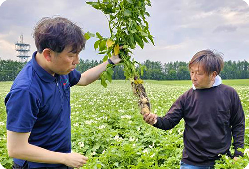 カルビーグループの主力商品である「ポテトチップス」「じゃがりこ」等の主原料はばれいしょです。私たちは、ばれいしょの開発・育種から、製品となりお客様へ届ける店頭までの一貫したバリューチェーンを構築しています。特に原料開発および調達において高い専門力を有しており、ポテトチップス等に適した独自のばれいしょ種子の開発・育種や、ほ場(農地)での栽培・収穫のコンサルティングやサポート等を行っています。
