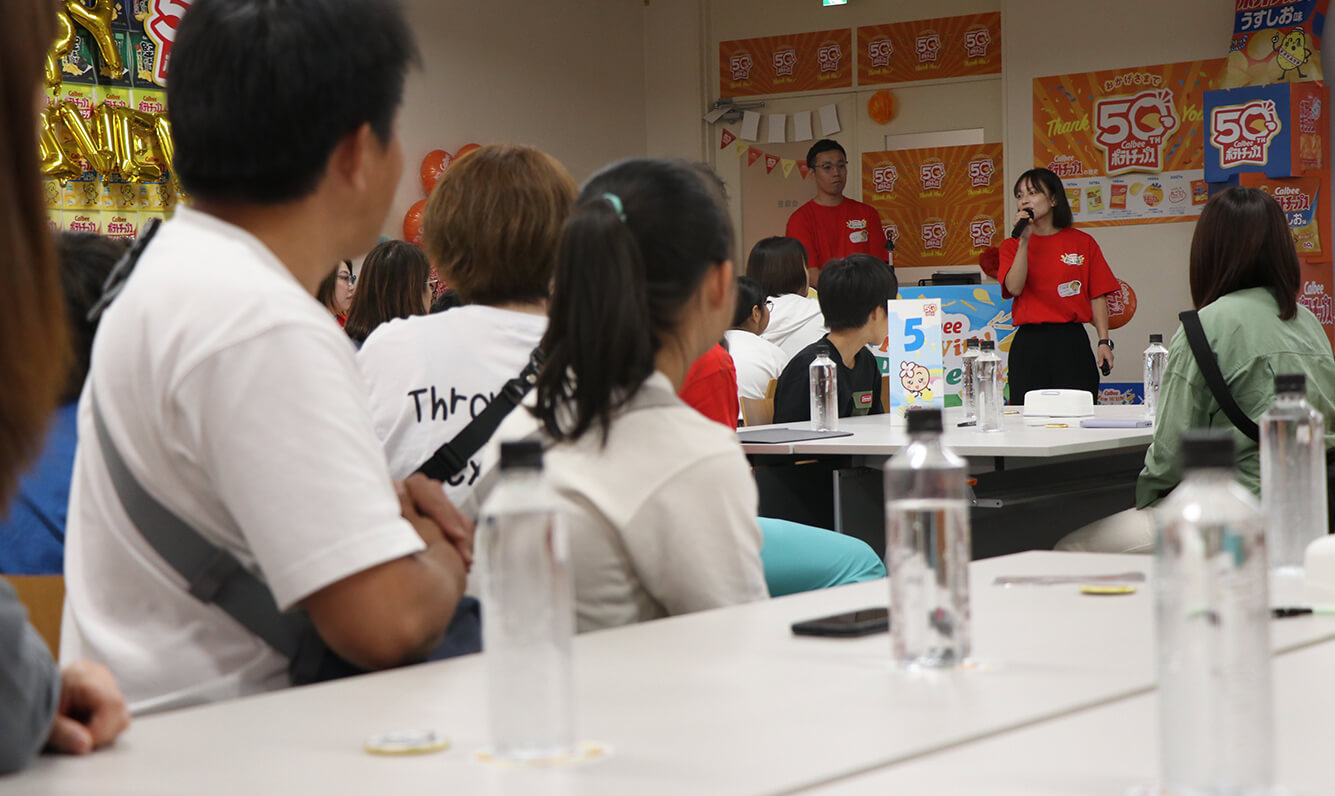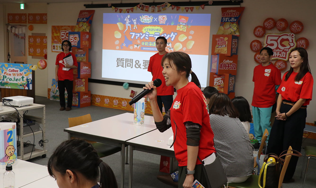 ファンの皆さまからカルビー社員に質問したいことや要望したいことをお聞きする「質問&要望タイム」。「ポテトチップス」をはじめとするカルビー商品に関する質問や「もっとこうしてほしい!」といったファンならではのお声を聴ける、カルビー社員にとっても非常に貴重な時間です。
