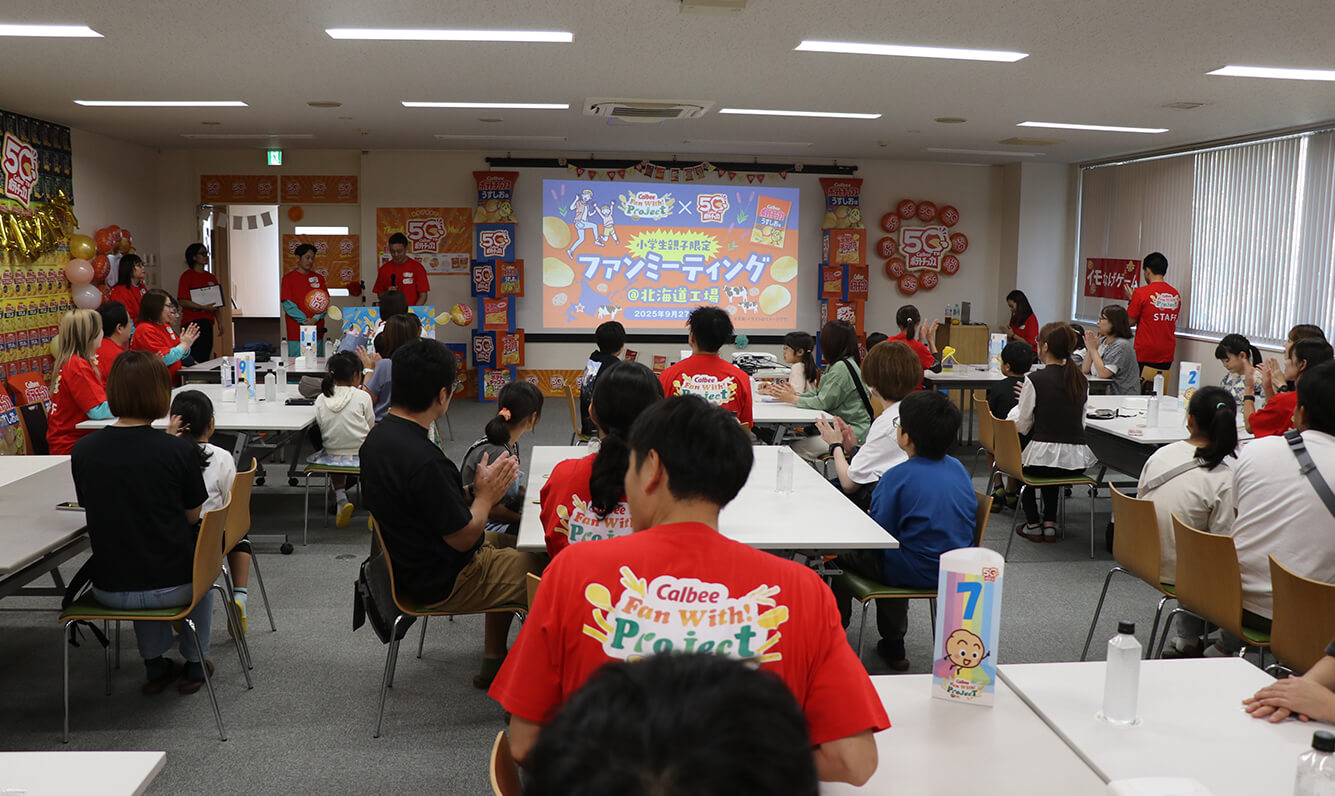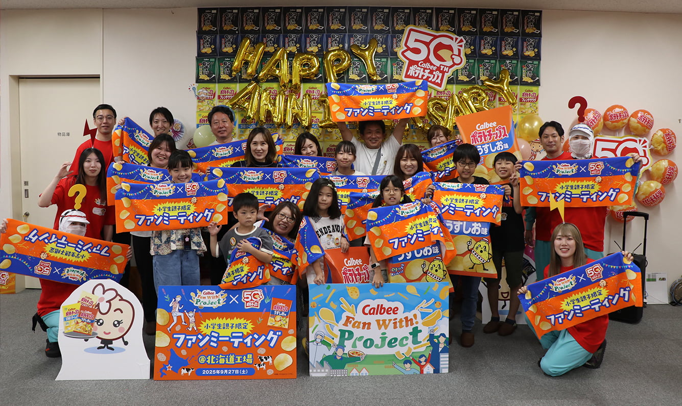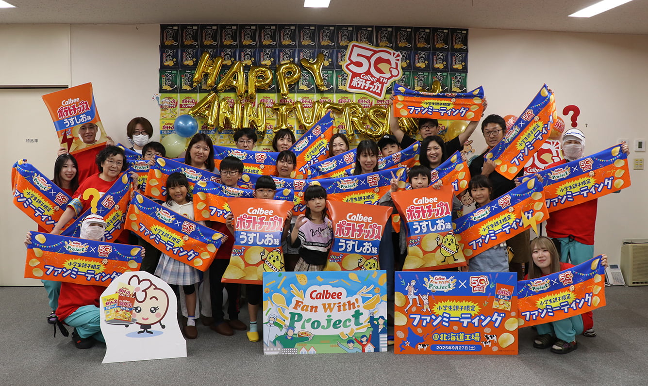 Calbee「Fan With! Project」2025 第7回目は、カルビーポテトチップス50周年を記念して小学生親子限定のファンミーティングを北海道工場で開催☆