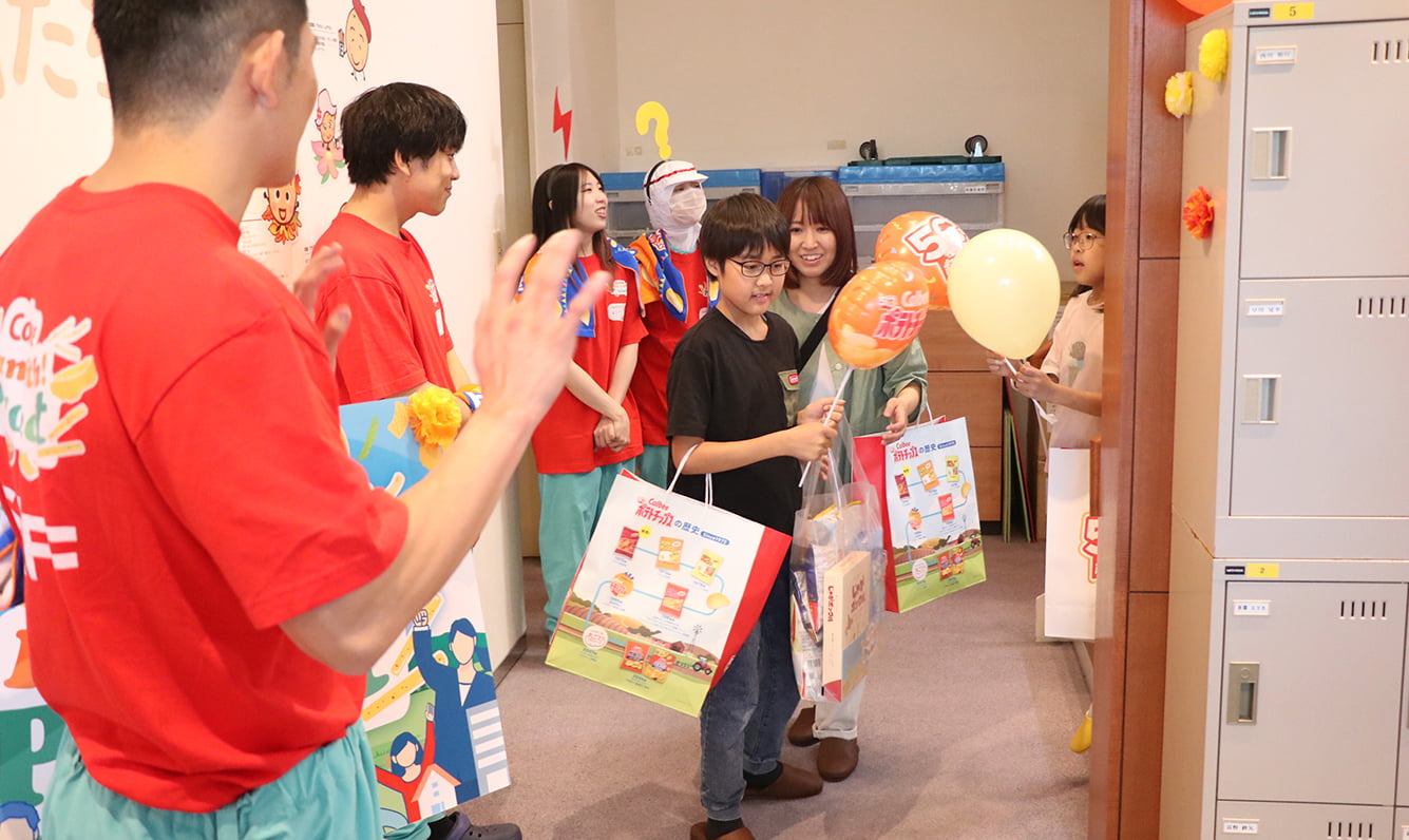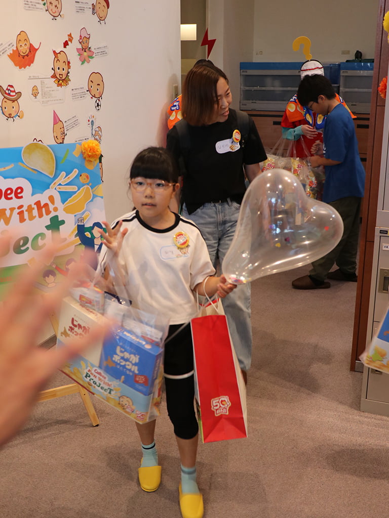 楽しい時間を締めくくるのは、カルビーポテトチップス50周年オリジナルグッズとカルビー商品が袋いっぱいに詰められたお土産!スタッフから、お土産をお渡ししながらファンの皆さまをお見送り!お家に帰ってからも、楽しい余韻が続くように、お土産はたっぷりお渡ししました♪