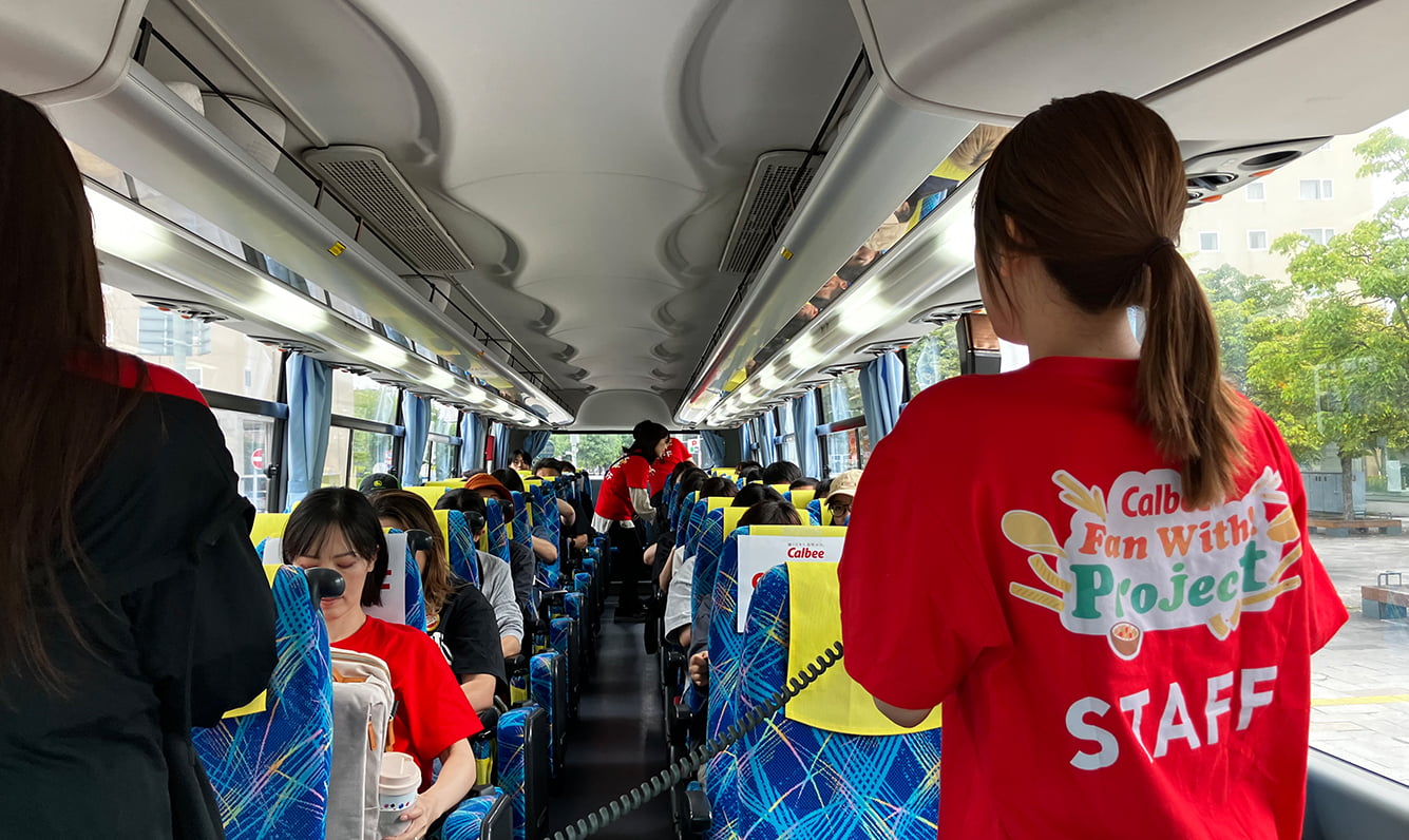 今回は、帯広駅から収穫体験を行うじゃがいも畑までファンの皆さまをバスでお送りしました🚌バスの中では、数字にまつわるカルビーの豆知識を交えたオリジナルビンゴ大会を開催♪