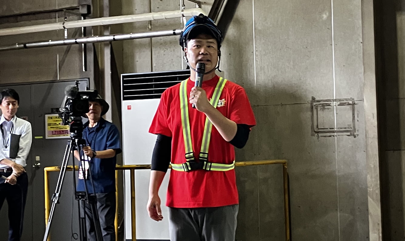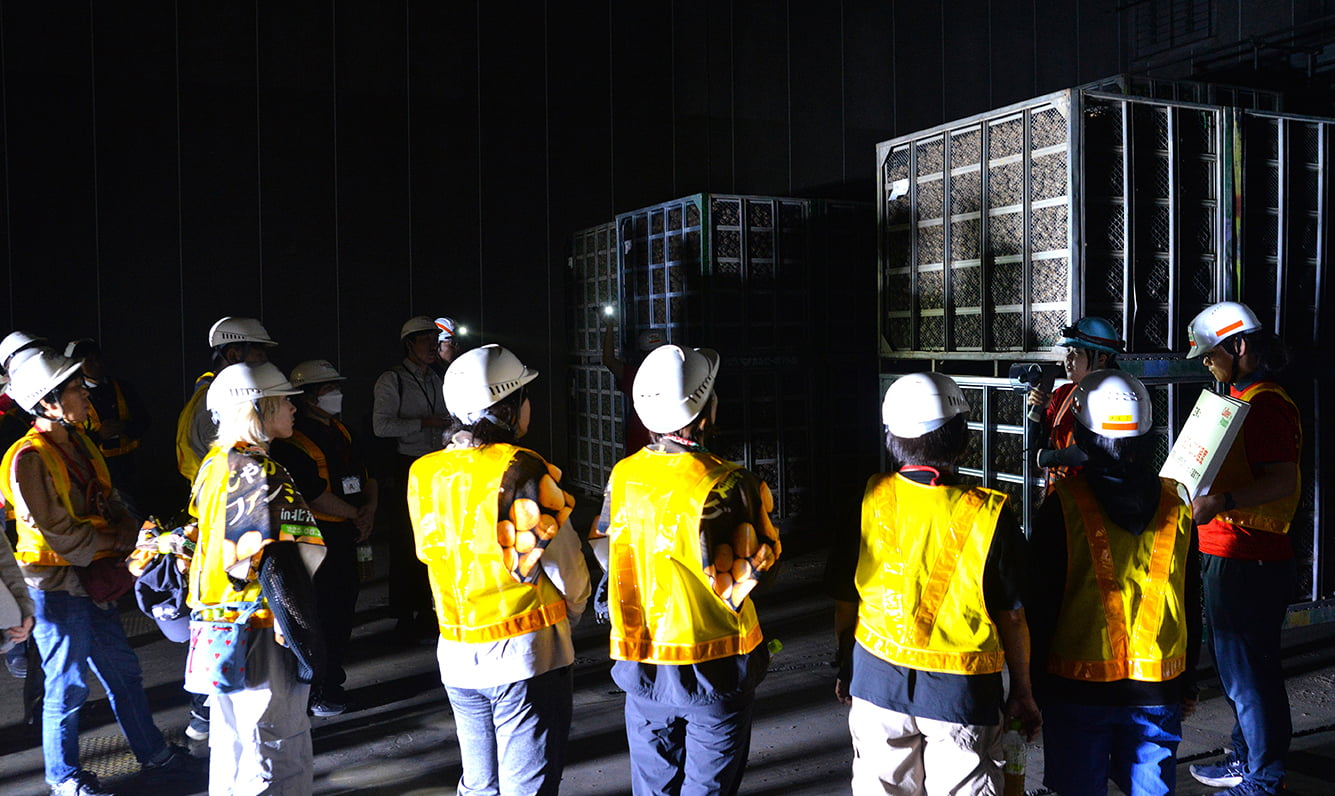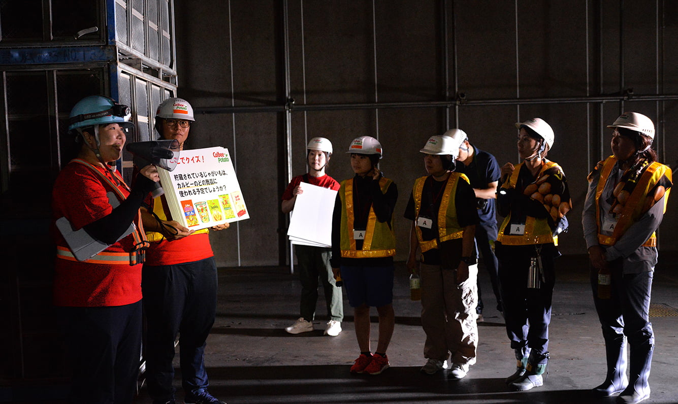 安全のためヘルメットとベストを着用いただき、巨大なじゃがいも貯蔵庫をご案内!