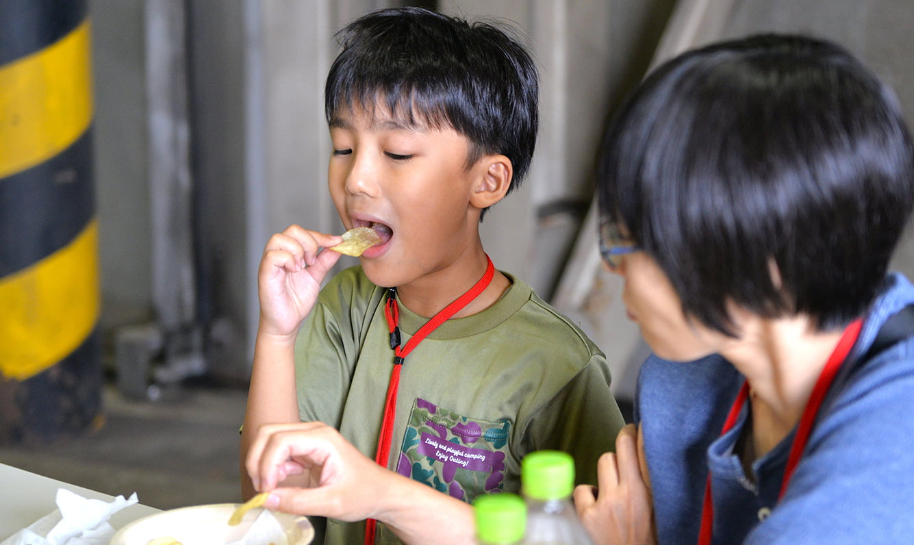 先ほど参加者の皆さまで収穫したじゃがいもを支所内で調理し、揚げたてのポテトチップスの試食会を実施!