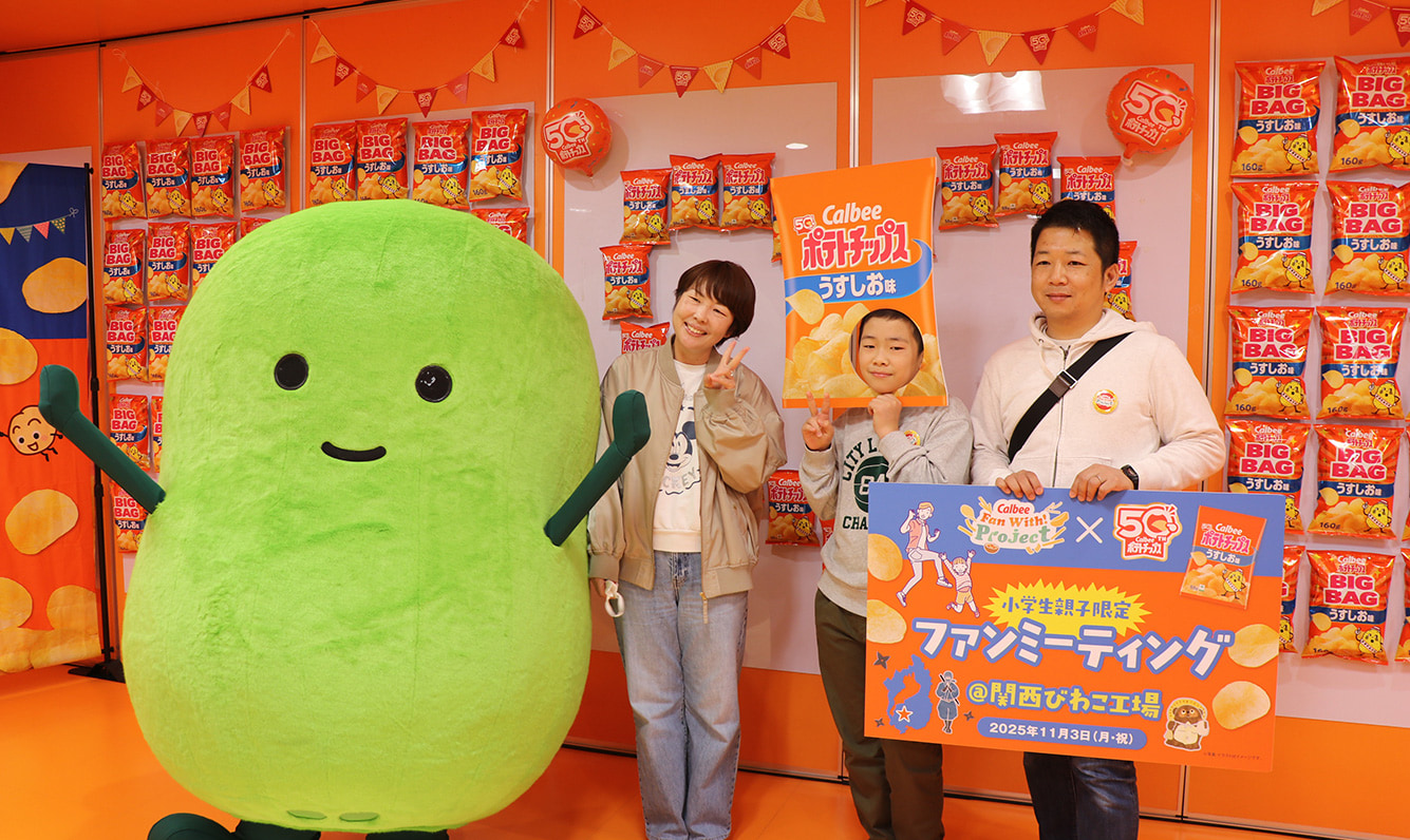 Calbee「Fan With! Project」2025 第10回目は、カルビーポテトチップス50周年を記念して小学生親子限定のファンミーティングを関西びわこ工場で開催☆