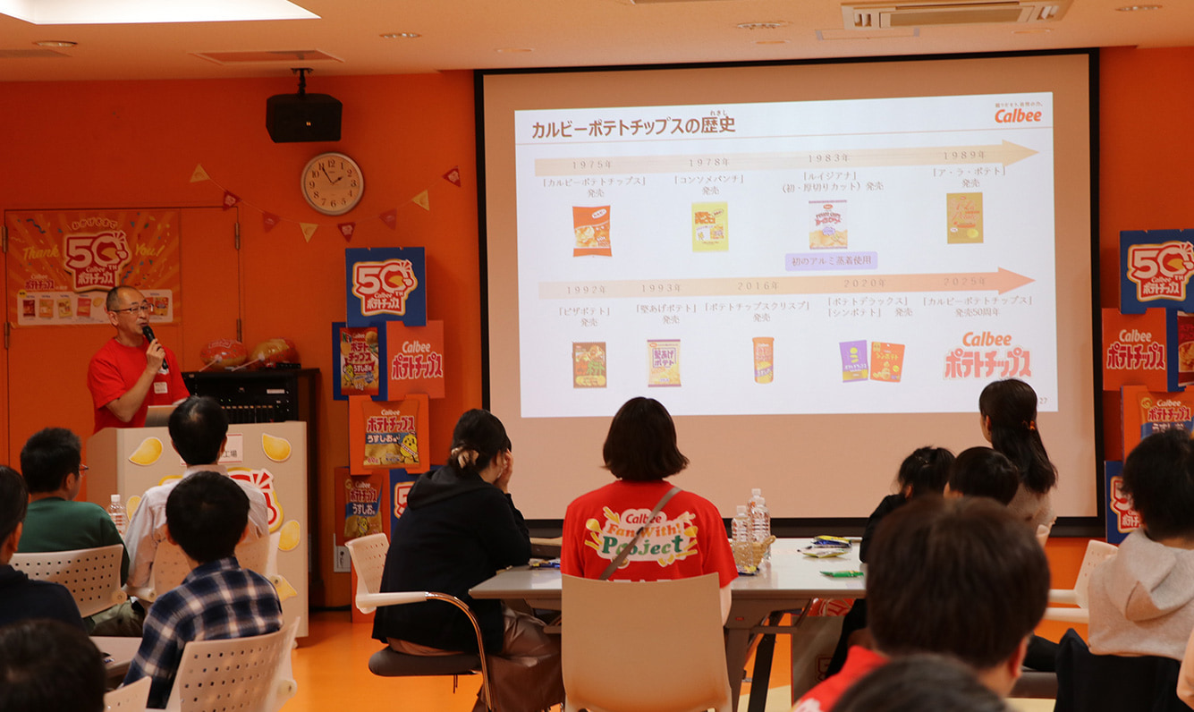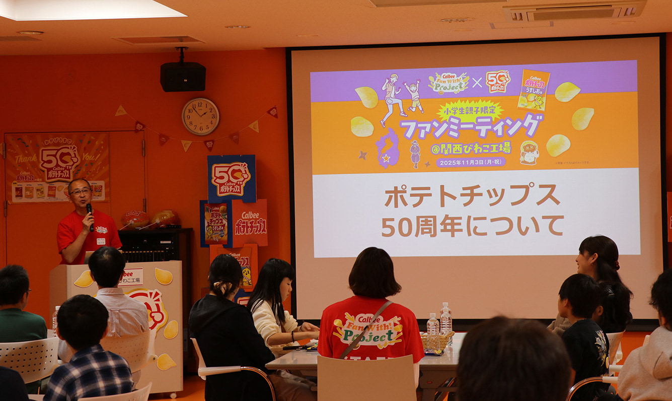 2年目となる2025年度は、今年で発売50周年を迎える「カルビーポテトチップス」シリーズを中心に全国でファンミーティングを開催し、カルビーファンの皆さまと交流します。
