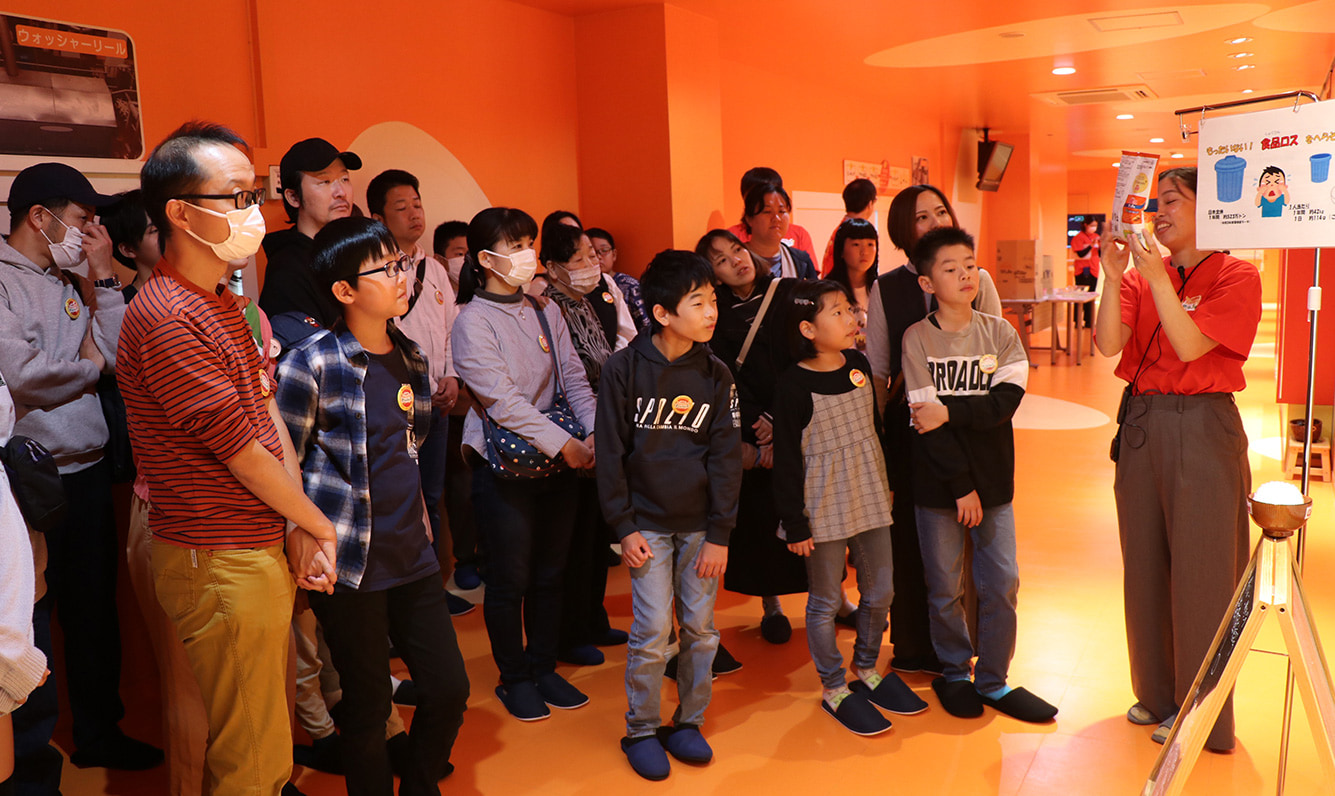 工場長の保坂さんより「関西びわこ工場」で生産している商品の紹介や、美味しい商品を作るための品質へのこだわりを説明しました。普段なかなか聞けない説明に、皆さん興味津々で聞かれていました。