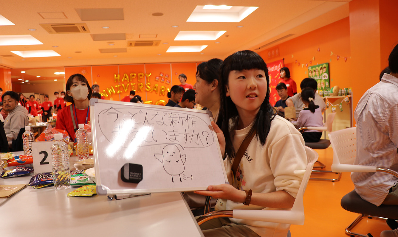 ファンの皆さまに質問や要望をお聞きする「質問&要望タイム」。テーブルに用意したホワイトボードに記載いただきます。こちらがドキッとするような鋭い質問や参考になる意見もあり、答える側もついつい真剣に。時間が許す限り商品担当や工場スタッフが皆さまからのご質問にお答えさせていただきました!