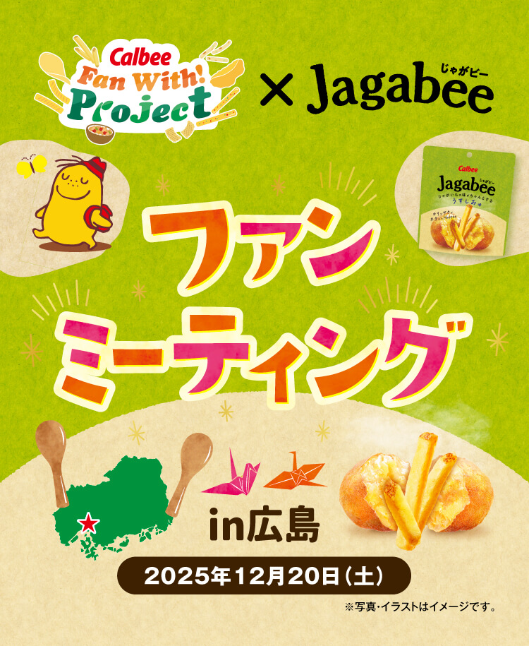 を広島で開催!2006年の発売以降19年間お客様のゆったり、ほっこりできる時間のお供として愛されてきたJagabee!日頃のご愛顧に感謝して、ファンのみなさまに楽しんでいただけるレクリエーションをご用意しています。