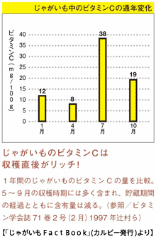 ●『夏ポテト』は、とれたての新じゃがを使っているので、ビタミンCが豊富に含まれています。1袋に含まれるビタミンCは、1日に必要な摂取量(栄養素等表示基準値)の31~32%です。