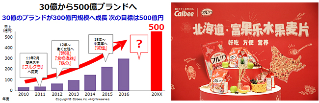 発売から20年間は10~30億日本円程度だった売上は、2016年度には292億日本円(約17.7億人民元)になり、同類グラノーラ市場の53% ※1のシェアを占めるリーディングブランドとなりました。
