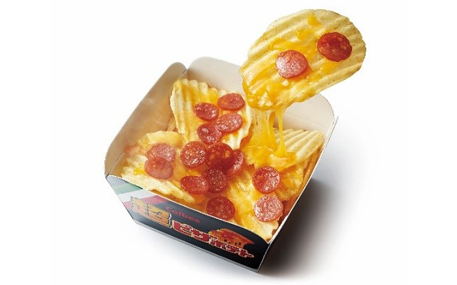 - ●店舗内で生のじゃがいもから作ったポテトチップスの上に温かいサラミととろけたチーズがかかった本物のピザに近い味わいです。