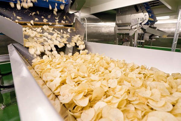 ポテトチップスを製造しているカルビーの工場は、