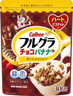 オーツ麦、ライ麦、玄米などの穀物を丁寧に焼き上げたチョコバナナ風味のグラノーラに、バナナとかわいいハートのビスケットをトッピング!元気を応援するカルシウムも入ったチョコとバナナの鉄板コンビが、朝にピッタリな味わいです。