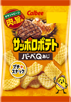 小麦粉(国内製造)、植物油、でん粉、じゃがいも、乾燥じゃがいも、上新粉、砂糖、食塩、鶏肉、オニオンパウダー、ソテーオニオン(豚肉を含む)、しょうゆ(大豆を含む)、かぼちゃパウダー、チキンパウダー、香辛料、たん白加水分解物、粉末しょうゆ、チキンエキスパウダー、酵母エキスパウダー、ビーフパウダー、調味動物油脂、発酵酵母エキスパウダー / 調味料(アミノ酸等)、炭酸カルシウム、カラメル色素、香料、甘味料(甘草)、香辛料抽出物、酸味料 |