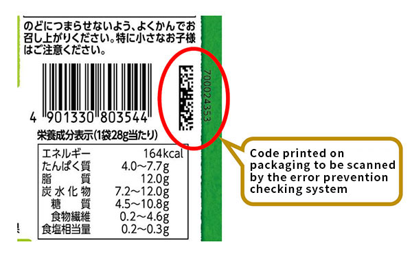 In the packaging processes on our production lines, we have introduced an error prevention matching system that checks whether the product contents match the packaging film to prevent errors in ingredient labels.