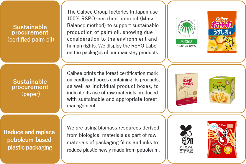 There is a growing awareness and demand for products that demonstrate consideration for social issues, such as the environment and human rights. The Calbee Group strives to provide value through environmental communication, enabling customers to develop a deeper understanding of its initiatives on these social issues.