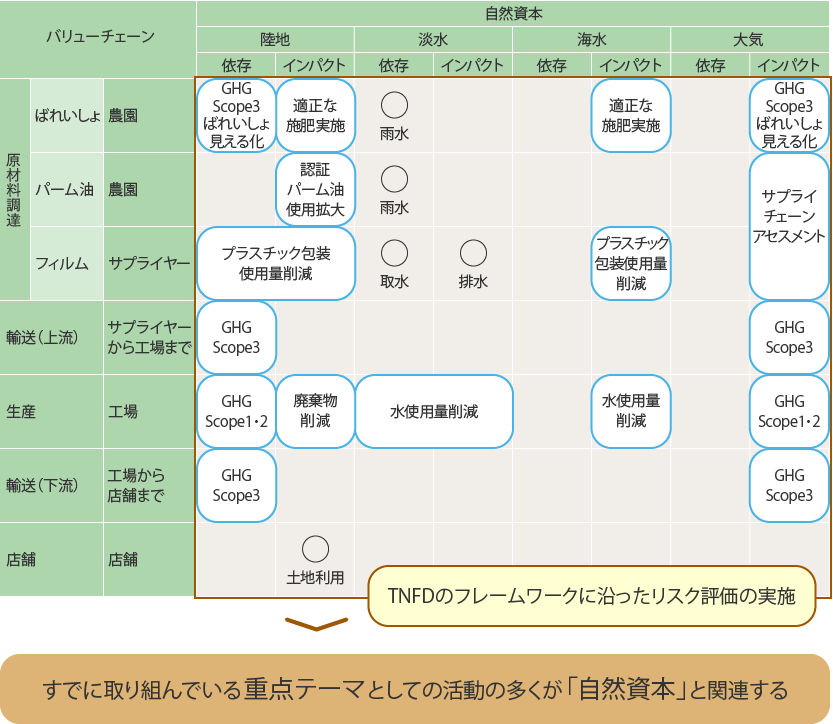 私たちの製品は、土壌、水、気候、生物多様性といった自然資本の恩恵を受けて成り立っており、これらの資源を守ることが、安定的な成長と持続可能な社会の実現に不可欠です。
