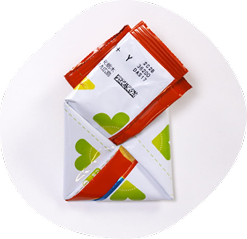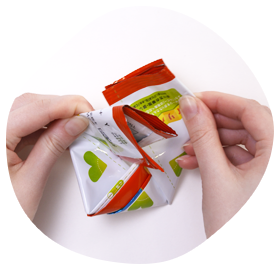 パッケージを折りたたむことでご家庭でのゴミの嵩(かさ)を減らすことにつながるよ。